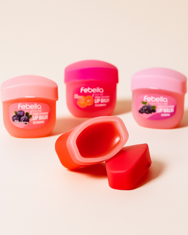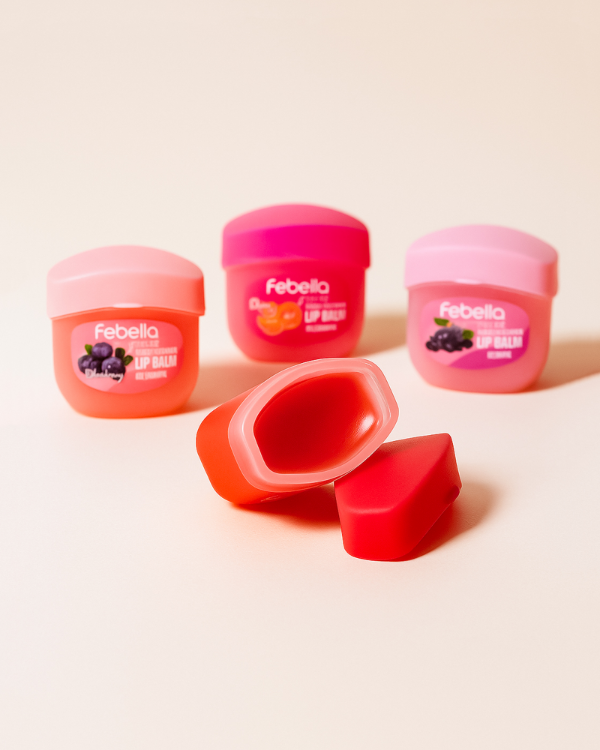 El Lip Balm Hidratante con Vaselina viene en frasquito y está disponible en 4 sabores riquísimos: Blueberry (arándanos), Grape (uva), Orange (naranja) y Strawberry (frutilla). No da color, no deja efecto glossy exagerado y es ideal para mantener los labios suaves, protegidos y sin resequedad durante todo el día.