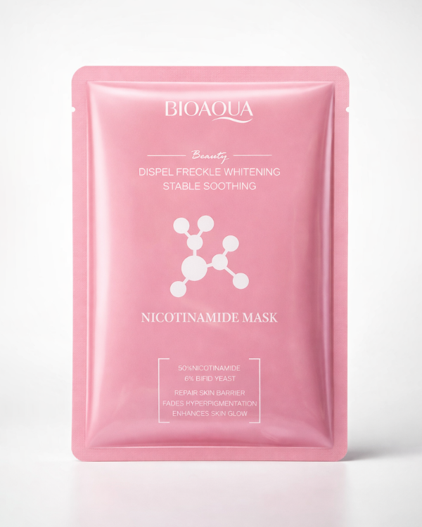 La Mascarilla Facial de Niacinamida de Bioaqua es ideal para darle a tu piel un boost rápido de hidratación y luminosidad. Su formato en tela se adapta perfectamente al rostro, ayudando a que los activos penetren mejor y dejen la piel más suave, fresca y uniforme en pocos minutos.