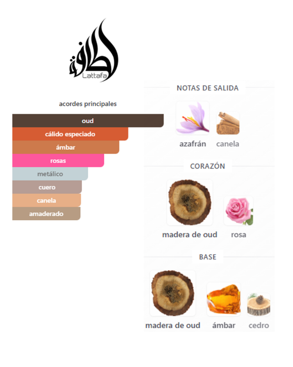 Opulent Oud es una fragancia intensa, cálida y especiada, con un perfil bien oriental y sofisticado. Desde la salida se siente el azafrán junto con la canela, aportando un toque especiado y envolvente. En el corazón, el oud se mezcla con la rosa, logrando un equilibrio entre lo profundo y lo floral, con un aire elegante y distintivo. El fondo refuerza esa intensidad con más madera de oud, ámbar y cedro, dejando una estela duradera, potente y con mucha presencia. Es ideal para quienes buscan perfumes fuertes, elegantes y con personalidad marcada, especialmente para la noche o climas frescos.